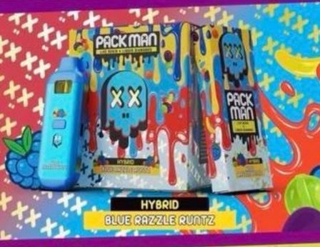 Packman Blue Razzle Runtz 3g cookies are 65 percent indica and 35 percent sativa. crybaby disposable